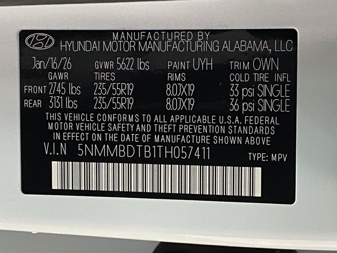 - Front Tire Size: P235/55VR19