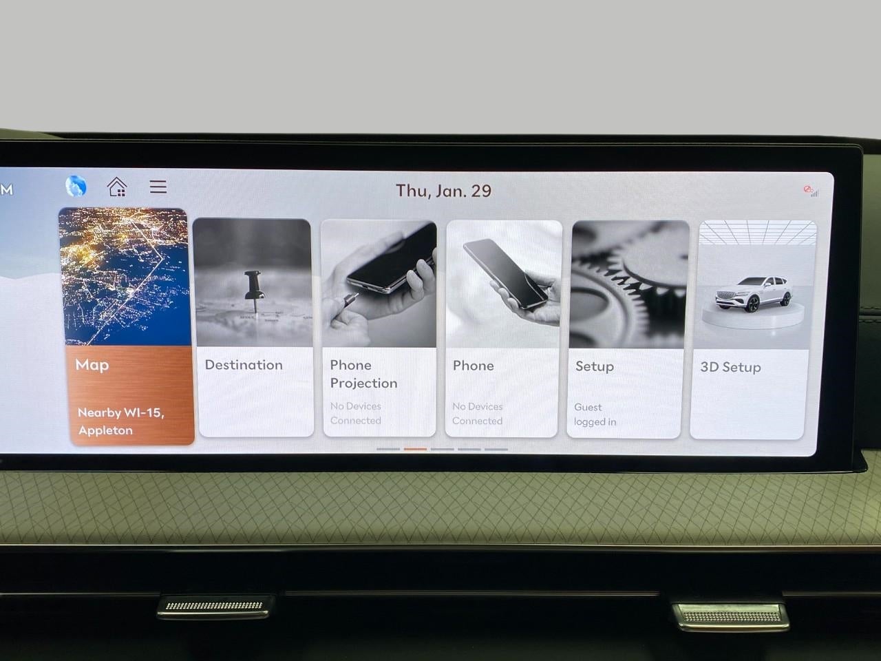 - Radio: AM/FM/HD Bang & Olufsen Sound System -inc: 1400 watts, 18 speakers, 14 channel amplifier, 27" integrated OLED instrument cluster and navigation system, SiriusXM Radio w/90-day subscription (not available in AK or HI), cloud connected platform (cloud profiles, connected routing, dynamic voice recognition, OTA updates), wireless Apple CarPlay, wireless Android Auto, Bluetooth® hands-free phone system w/audio streaming, wireless phone charger, Wi-Fi hotspot, steering wheel controls, USB and Genesis Connected Services