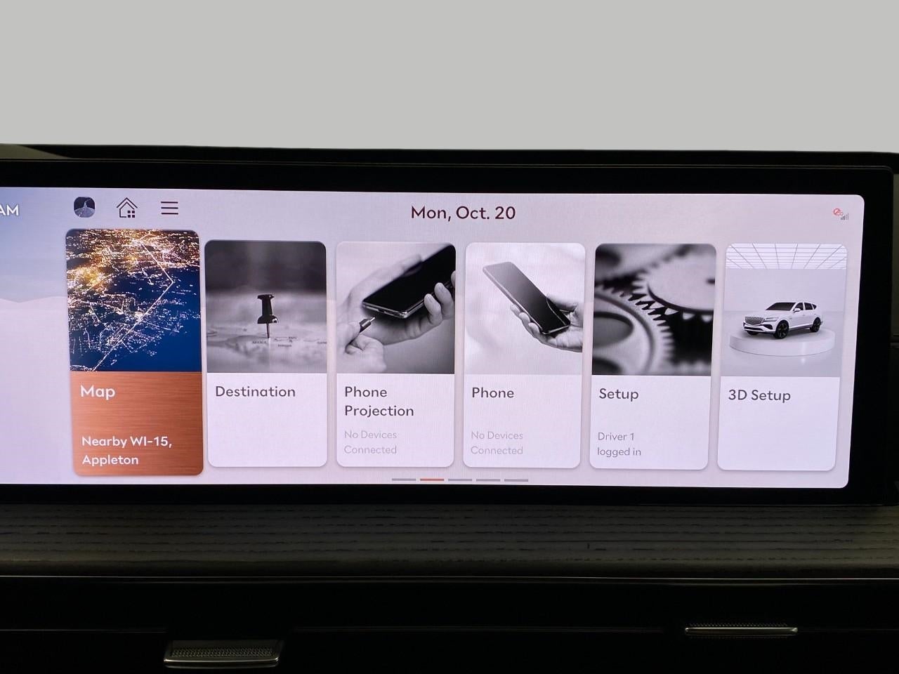 - Radio: AM/FM/SiriusXM/HD Bang & Olufsen Sound Sys -inc: 1400 watts, 18 speakers, 14 channel amplifier, 27" integrated OLED instrument cluster and navigation system, SiriusXM Radio w/90-day subscription (not available in AK or HI), cloud connected platform (cloud profiles, connected routing, dynamic voice recognition, OTA updates), wireless Apple CarPlay, wireless Android Auto, Bluetooth® hands-free phone system w/audio streaming, wireless phone charger, Wi-Fi hotspot, steering wheel controls, USB and Genesis Connected Services