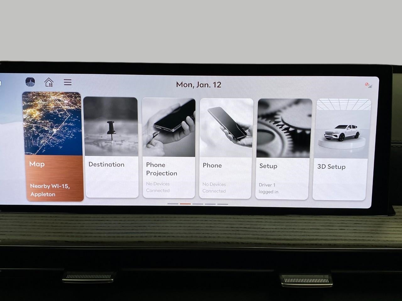 - Radio: AM/FM/HD Bang & Olufsen Sound System -inc: 1400 watts, 18 speakers, 14 channel amplifier, 27" integrated OLED instrument cluster and navigation system, SiriusXM Radio w/90-day subscription (not available in AK or HI), cloud connected platform (cloud profiles, connected routing, dynamic voice recognition, OTA updates), wireless Apple CarPlay, wireless Android Auto, Bluetooth® hands-free phone system w/audio streaming, wireless phone charger, Wi-Fi hotspot, steering wheel controls, USB and Genesis Connected Services