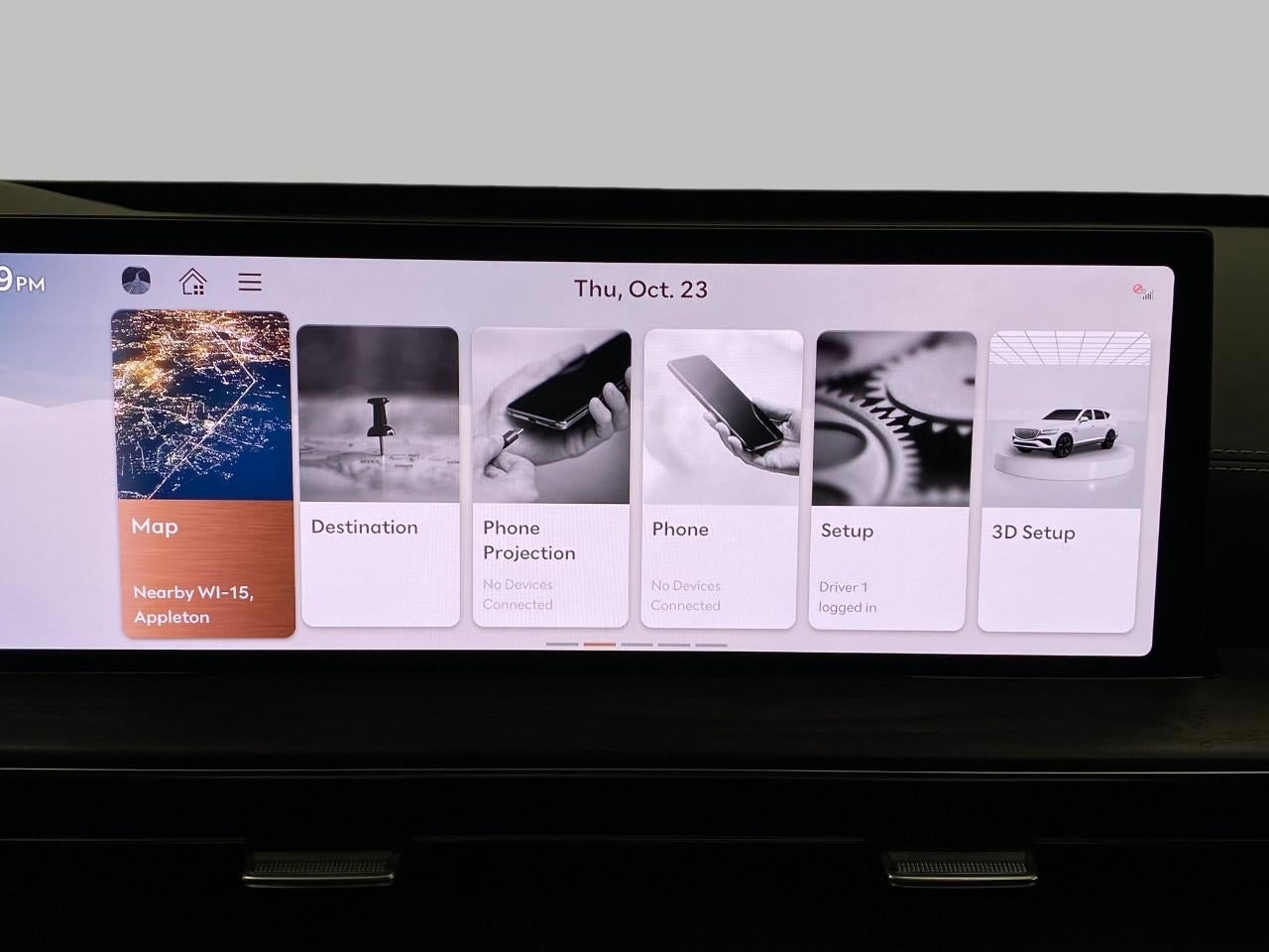 - Radio: AM/FM/SiriusXM/HD Bang & Olufsen Sound Sys -inc: 1400 watts, 18 speakers, 14 channel amplifier, 27" integrated OLED instrument cluster and navigation system, SiriusXM Radio w/90-day subscription (not available in AK or HI), cloud connected platform (cloud profiles, connected routing, dynamic voice recognition, OTA updates), wireless Apple CarPlay, wireless Android Auto, Bluetooth® hands-free phone system w/audio streaming, wireless phone charger, Wi-Fi hotspot, steering wheel controls, USB and Genesis Connected Services