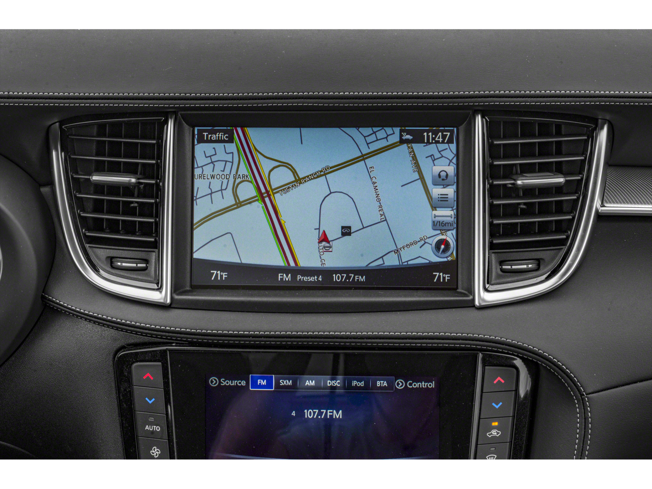 - Radio: AM/FM/CD Audio System -inc: 6-speaker w/4 USBs, INFINITI InTouch navigation w/upper 8" and lower 7" VGA LCD touch screens, INFINITI voice recognition for navigation, INFINITI InTouch services select w/4 year complimentary trial access to convenience services, INFINITI InTouch services premier w/12 month complimentary trial access to safety, security and convenience services, SiriusXM Traffic w/4-year complimentary trial access to real-time traffic information and SiriusXM Travel Link w/4-year complimentary trial access to weather, fuel prices, stocks, sports and movie times