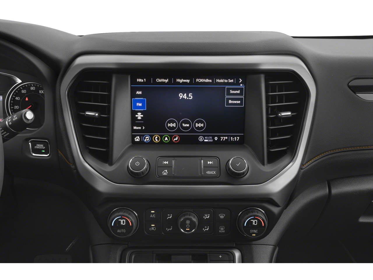 - Audio system, 8" diagonal GMC Infotainment System with Navigation includes multi-touch display, AM/FM/SiriusXM stereo, Bluetooth® streaming audio for music and most phones, Android Auto and Apple CarPlay capability for compatible phones, advanced voice recognition, in-vehicle apps, personalized profiles for infotainment and vehicle settings