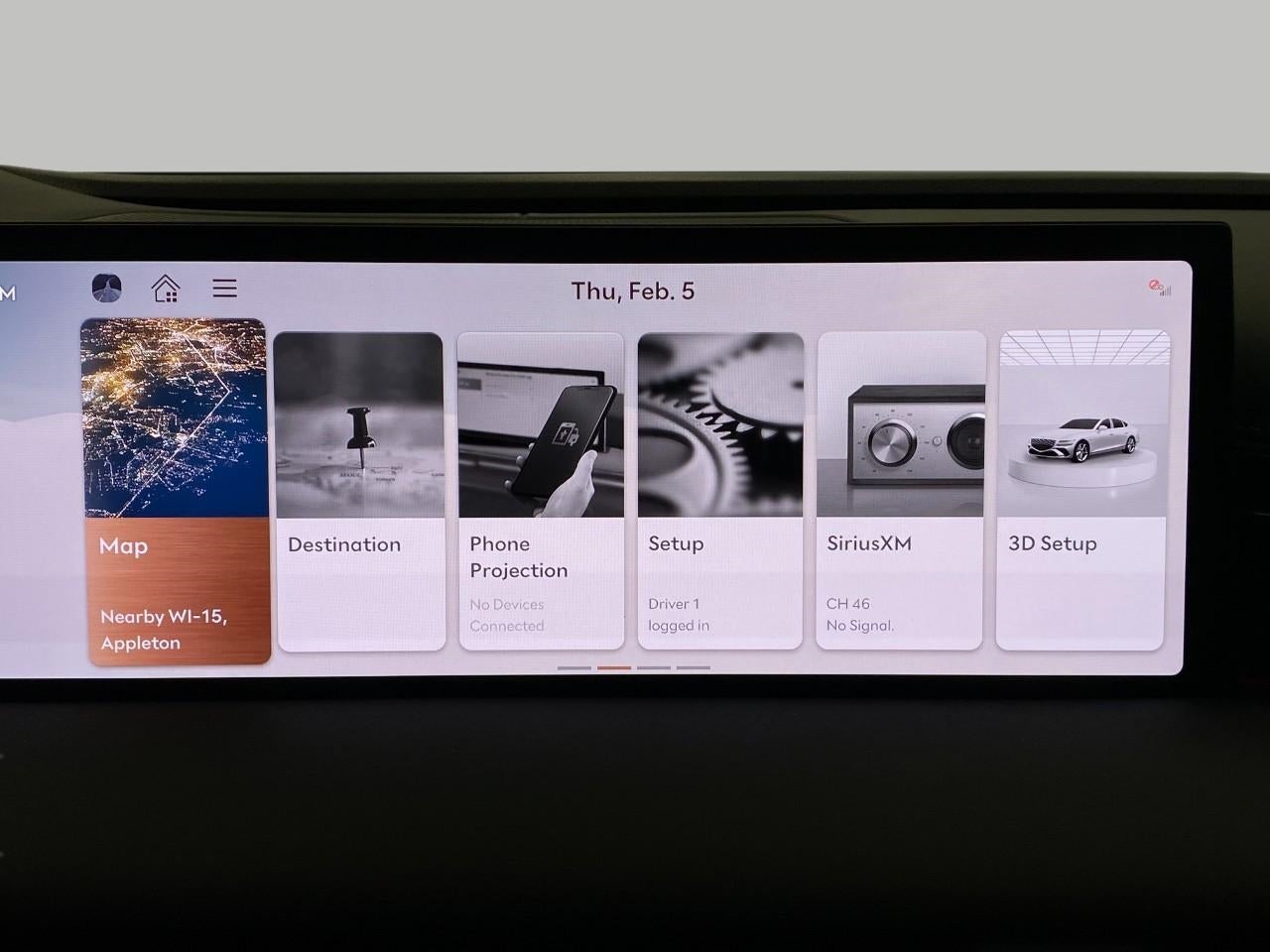 - Radio: AM/FM/HD/SiriusXM Bang & Olufsen Audio Sys -inc: 1400 watts, hi-resolution audio, 18 speakers, 14 channel digital external amplifier, 27" high-definition OLED display and navigation system, SiriusXM Radio w/90-day trial subscription (not available in AK or HI), wireless Apple CarPlay, wireless Android Auto, fingerprint authentication system, Genesis Connected Services, USB, Bluetooth® hands-free phone system w/audio streaming and Wi-Fi hotspot