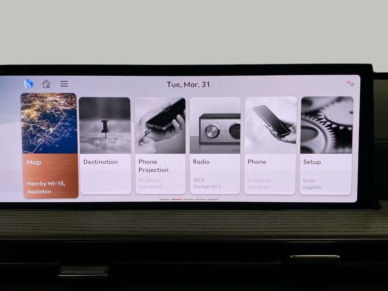 - Radio: AM/FM/HD Bang & Olufsen Sound System -inc: 1400 watts, 18 speakers, 14 channel amplifier, 27" integrated OLED instrument cluster and navigation system, SiriusXM Radio w/90-day subscription (not available in AK or HI), cloud connected platform (cloud profiles, connected routing, dynamic voice recognition, OTA updates), wireless Apple CarPlay, wireless Android Auto, Bluetooth® hands-free phone system w/audio streaming, wireless phone charger, Wi-Fi hotspot, steering wheel controls, USB and Genesis Connected Services